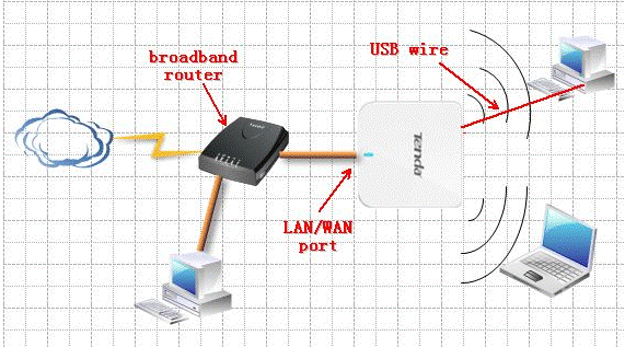 7. After rebooting, please connect A6 to your modem as the topology and then use your wireless devices to search the SSID of A6, input the security key and connect to it.