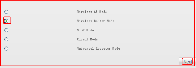 3. Click on Quick setup->Wireless Router Mode as the picture below, then click Next