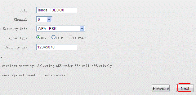 Security Key is your wireless password; it should be at least 8 characters.