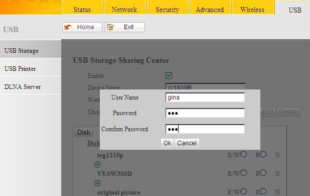4.Click on USB, choose the right for your file, click Add and set a name and password for your USB Storage.