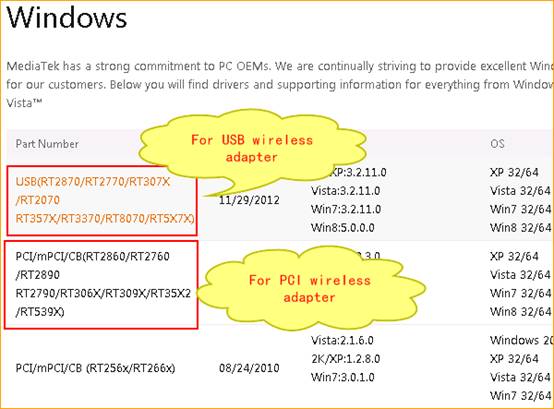 3. Choose the driver for your USB or PCI wireless adapter, no matter which operating system, you should choose the first driver for USB or PCI.