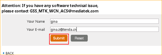 4. On the botton of the page, input your name and email, click Submit to downlaod the driver.