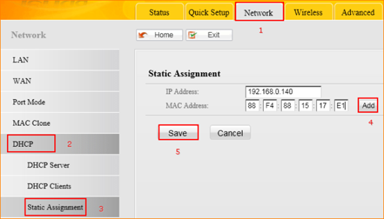 As the picture above, after settings, the device with MAC Address 88:F4:88:15:17:E1 will get the IP address of 192.168.0.140 all the time.