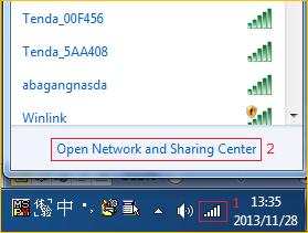 1 Click Network Connection Icon on the system tray, then click Open Network and
