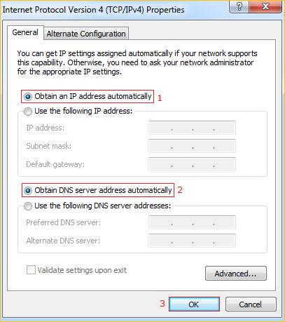 5 Choose Obtain an IP address automatically and Obtain DNS server address