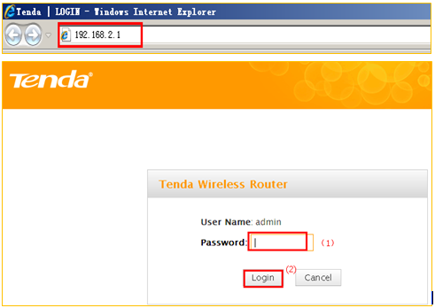 1 Open a browser then type 192.168.2.1 in the Address bar, click Enter. Type the Password(default: admin )in the bars then click on the Login button to login the setting page.
