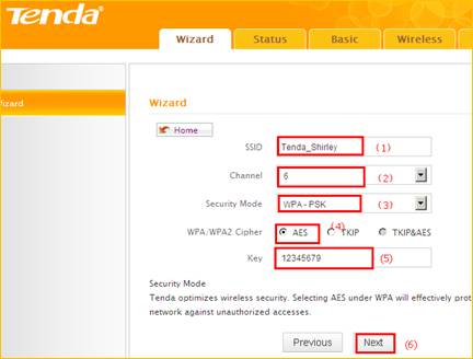 3 Change the SSID, channel, security mode, WPA/WPA2 Cipher and Key, click next.