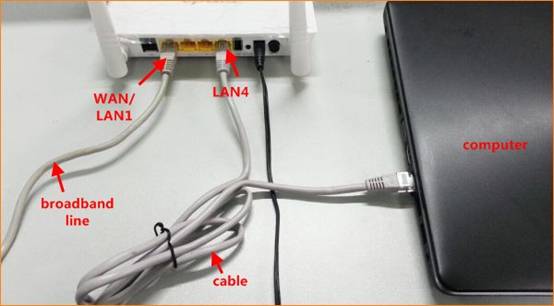 Connect the broadband line with the WAN port of D303, and then connect your computer with LAN port of D303 by a cable.