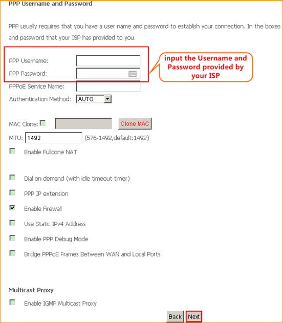Note: If you have no idea about what is the internet connection type, the accounts (user name and password) please call your ISP for them.
