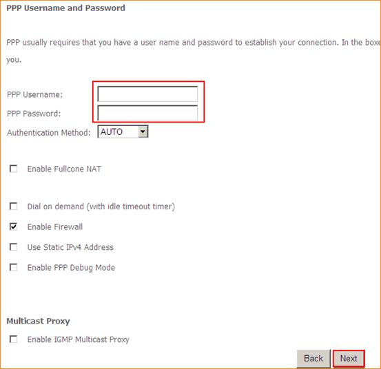 Note: If you have no idea about what is the internet connection type, VPI/VCI value, the accounts (user name and password) please call your ISP for them.