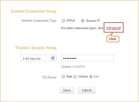 3.1.3 Click on Advanced on the right of the page to login the advanced setting page.