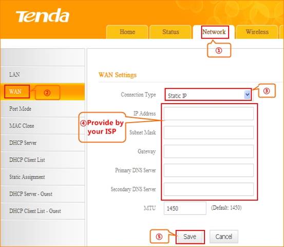 This article will guide you how to setup Tenda FH1202 Static IP mode and the steps as below.
