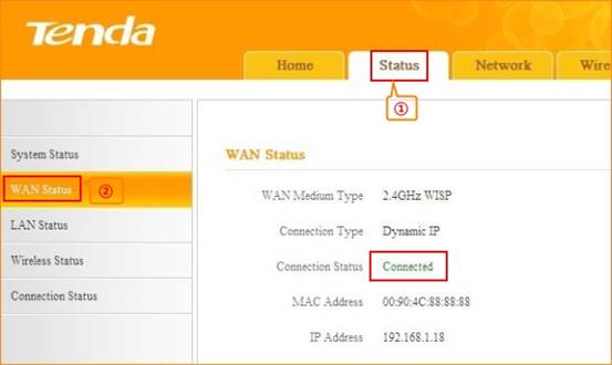 3.After reboot, if the connection status shows connected and get the gateway of uplink router, it means that you can have internet.