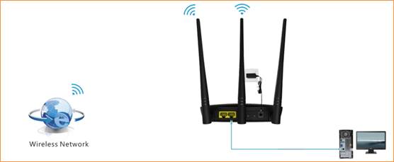 Connect one of the port to the router which can access internet, then connect your computer with the other LAN ports of the router by a cable.
