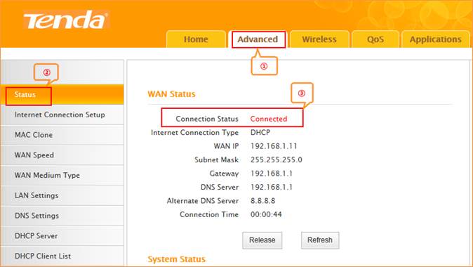 1,When the Connection Status show Disconnect, it means that there are some problem with the WAN Connection. please check hardware connection.