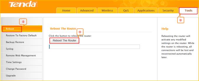 4 After setting, please click on Tools, and click on Reboot then hit on the Reboot the router button to reboot the router for refreshing the device info.