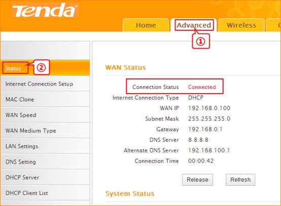 3.3 After reboot, if the connection status shows connected and get the gateway of uplink router, it means that you can have internet.