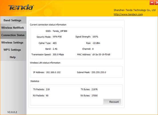 After you have successfully connected to a wireless network, you can click Wireless Status to view detail of the connection.
