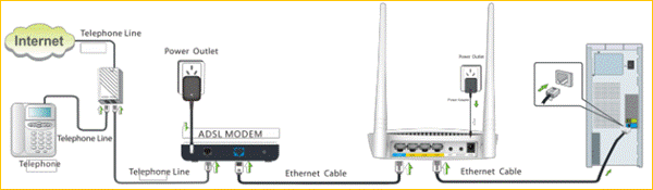Connect the modem with the WAN port of the router, and then connect your computer with one of the LAN ports of the router by a cable.