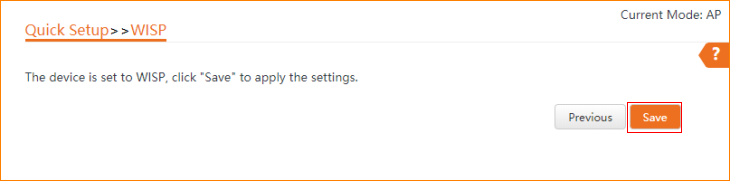 3.7 The device is set to WISP, click "Save" to apply the settings.