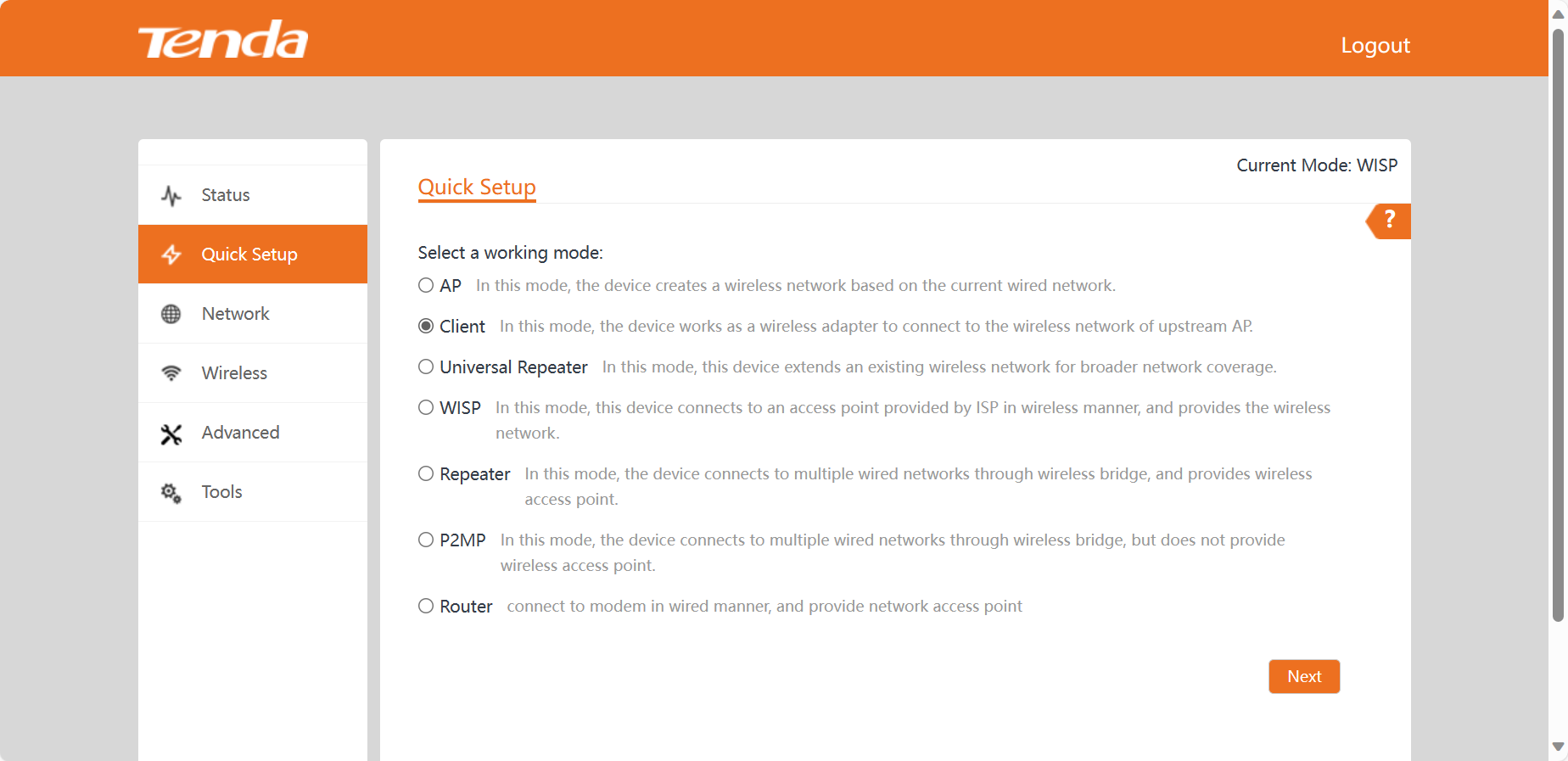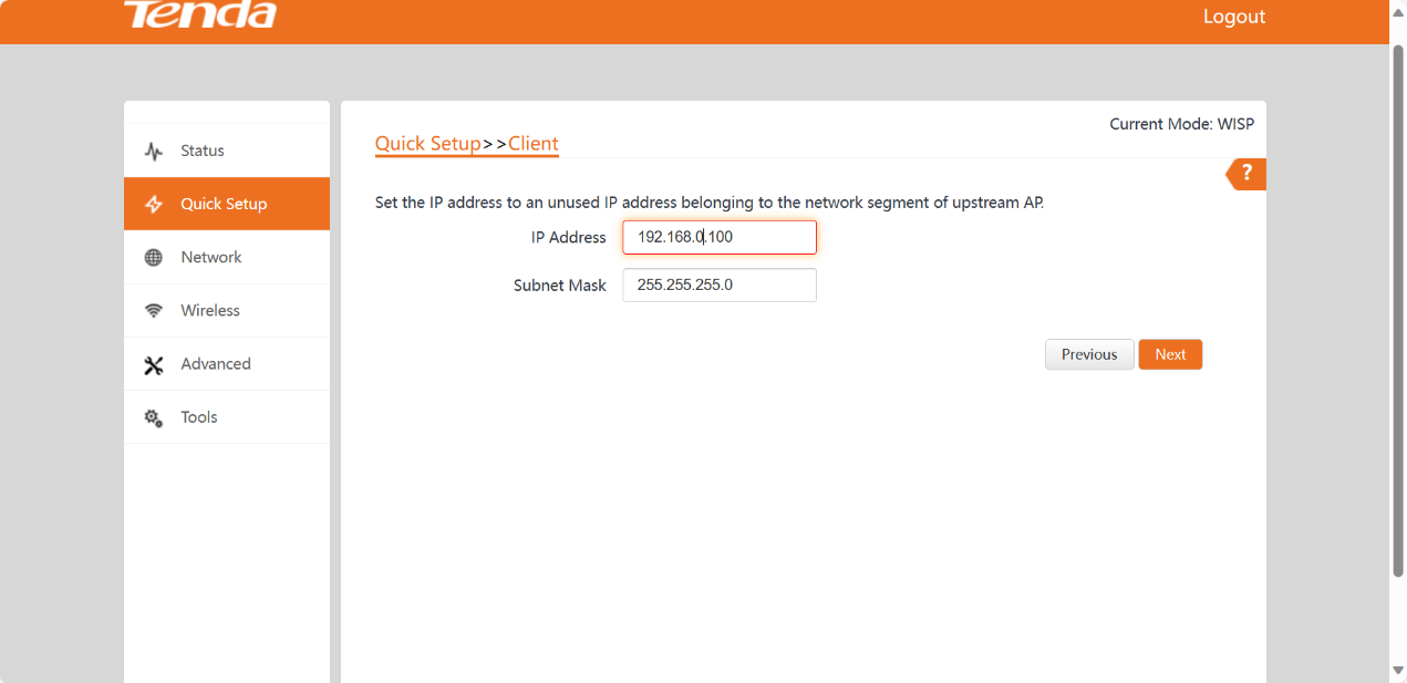 Step4: Set the IP address to an unused IP address belonging to the network segment of upstream AP. Click Next.