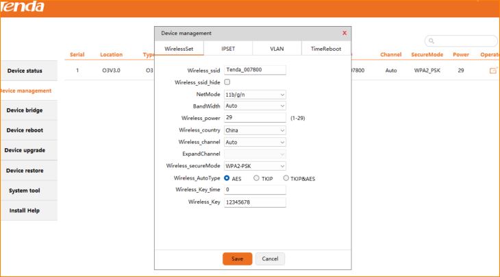 Step4: you can configuration the CPE in the Device management.You can change its SSID、Wireless power and Wirelss channel so on.