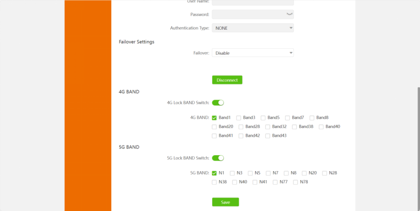 These two band switches are disabled by default. You can enable the switch, and select the band you want and save it.