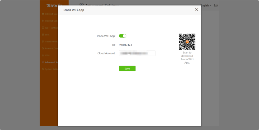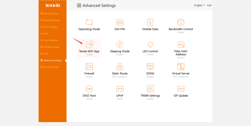 Go to “Advanced Settings”, and Click “Tenda WiFi APP”