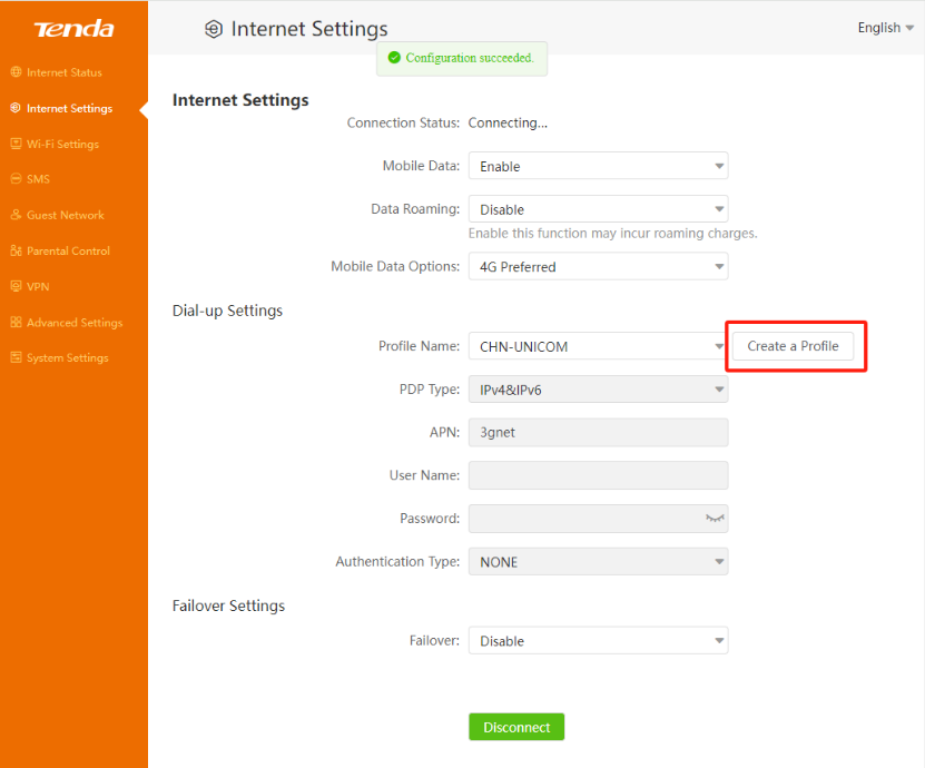 Step 3: If the wired speed of the router is still quite slow, please contact your SIM card provider to see if they have other APN settings, if so, try to create a connection profile on Internet Settings page to see the speed can be improved.