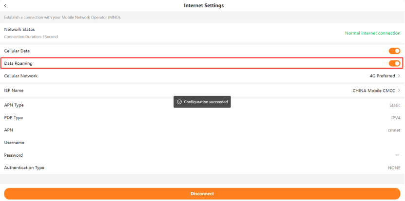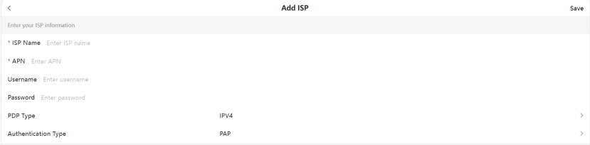 4.Set APN, username, password manually and click Save.
