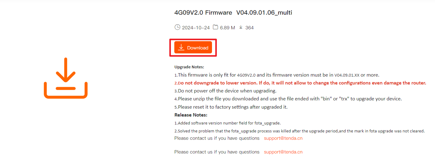 Visit this link: 4G09V2.0 Firmware_Tenda-All For Better NetWorking and download the firmware.