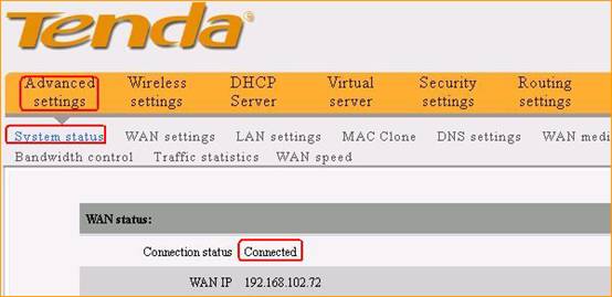 Attention: After connection. the SYS light should be blinking, WLAN light should be on or blinking, one of LAN ports (12,3,4) is on, WAN light should be on or blinking.