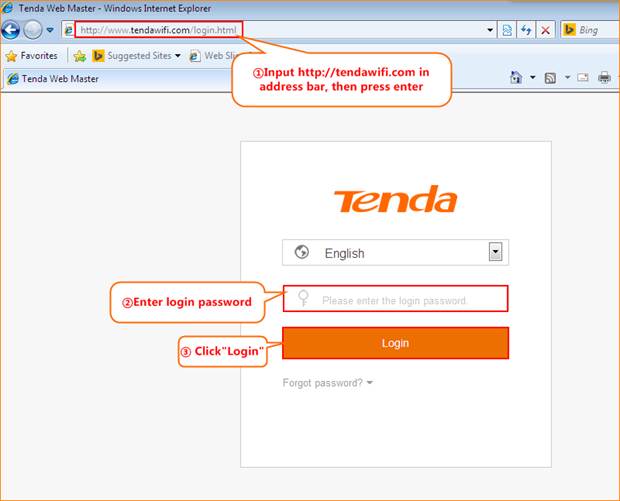 Step 1: Open a web browser then type http://tendawifi.com in the Address bar. Press “Enter”. Type in login password, and click “Login”.
