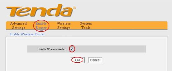 5In the homepage of 3G150B, please click Enable Router, and tick Enable Wireless Router, then click OK. The router will reboot automatically.