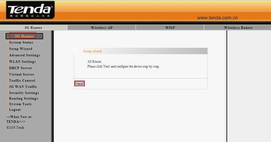 4. Click on 3G Router mode, and click on Next;