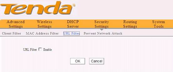 2. Click the Security SettingsàURL Filter. The URL filter is disable default.