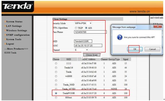 (4). Then click on Open Scan, you will find your route’s signal. Please choose it and click on OK. Then click Apply,and the router will reboot.