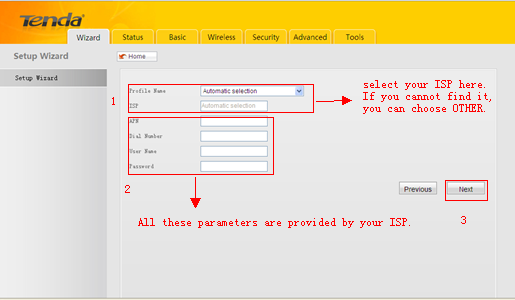 6. Please input the parameters which you have recorded from your 3G modem in this page and click Next button.