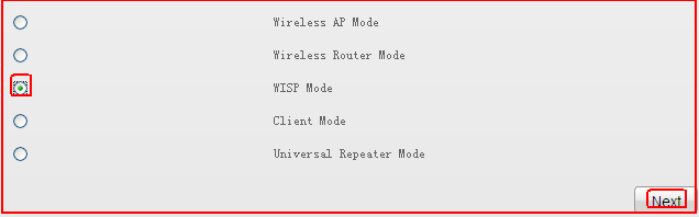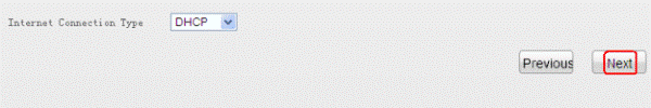 6. Choose Internet Connection Type. If your uplink router has enable DHCP function, then choose DHCP here, if not, choose Static IP and assign an IP address for the WAN port(be the same range of the LAN port with uplink router), then click Next.