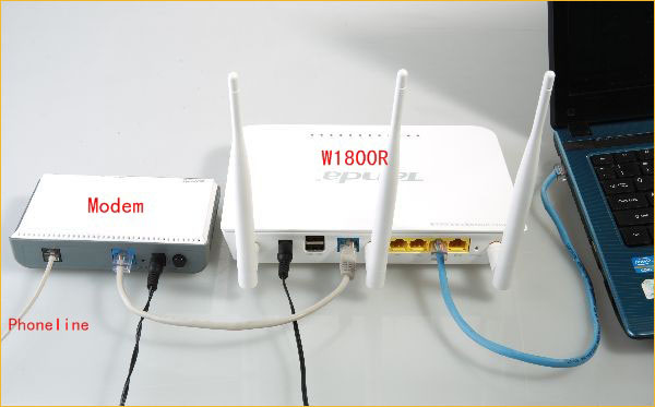 Connect the modem to the blue port of the router, then connect the router to your computer by a cable as the following picture.