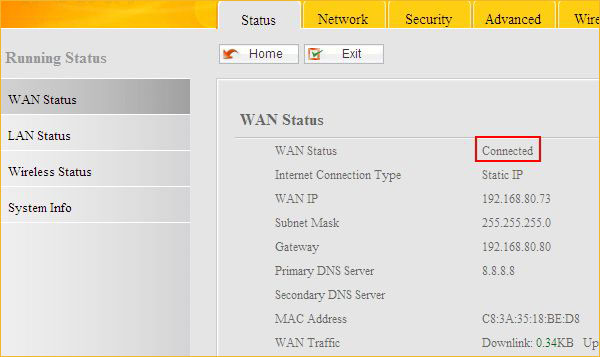 4.Click on Network, then click on WAN Settings, then choose Static IP as Internet Connection Type and input the information.