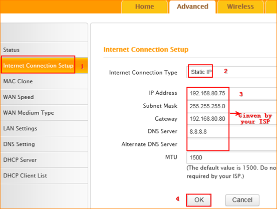How to setup the router for Static IP Internet connection mode?