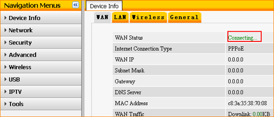 If the WAN Status shows Connecting, please do as the following steps.