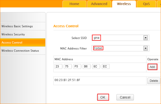 Sometimes we find that somebody is using our wireless network without permission. In order to get rid of this situation, we can enable Wireless Access Control.