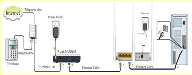 one of the LAN ports of the router by a cable.