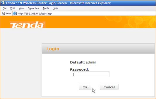1 Fill in admin in Password fields, click OK to login.