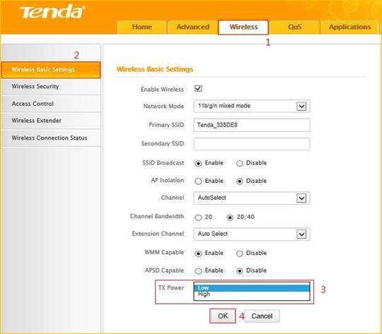 mode. If you want to set your router’s wireless transmitting power in high(low) power mode,