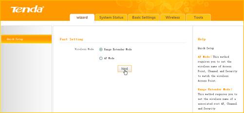 1 Click Wizard, select Range Extender Mode and click Next.