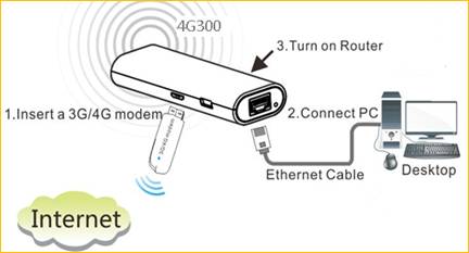 Connect the RJ-45 port of the router with an Ethernet cable. The topology is as below: