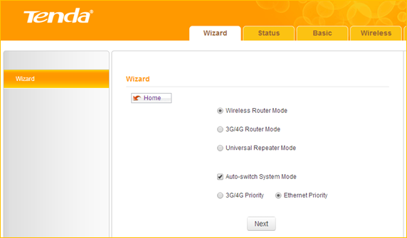 3 Choose the Wireless Router Mode option, then click on Next.